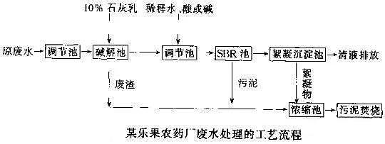 對于農(nóng)藥廢水的治理,生化法是可行、成熟的方法。但是由于農(nóng)藥廢水成分復(fù)雜、污染物濃度高、毒性大,直接用生化法處理很困難,一般要輔助以適當(dāng)?shù)念A(yù)處理或配水稀釋,使其進(jìn)生化處理系統(tǒng)的水質(zhì),控制在COD1,000-1,500mg/L,有機(jī)磷40-120mg/L,處理后大多可使COD≤150mg/L。
